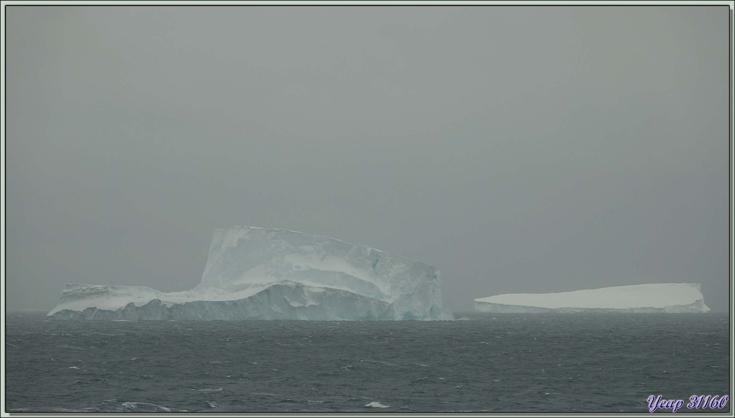 Le brouillard s'installe petit à petit, se sera le dernier iceberg à pouvoir être pris en photo, dommage car apparemment il avait une très belle couleur tirant sur le bleu-vert.
