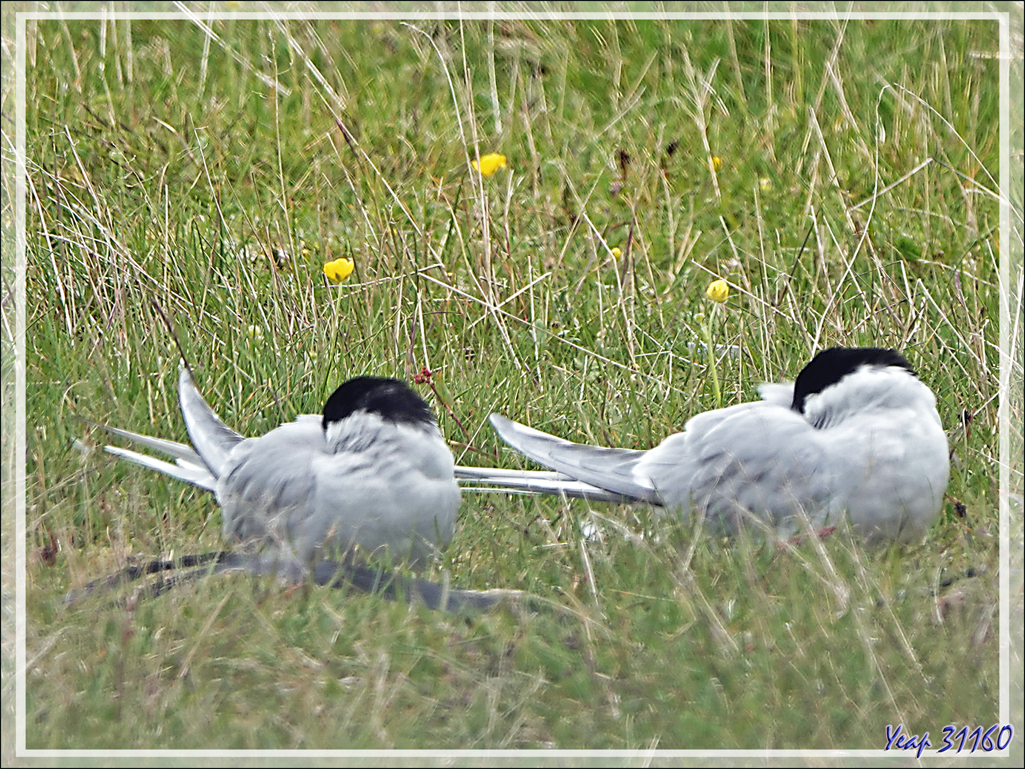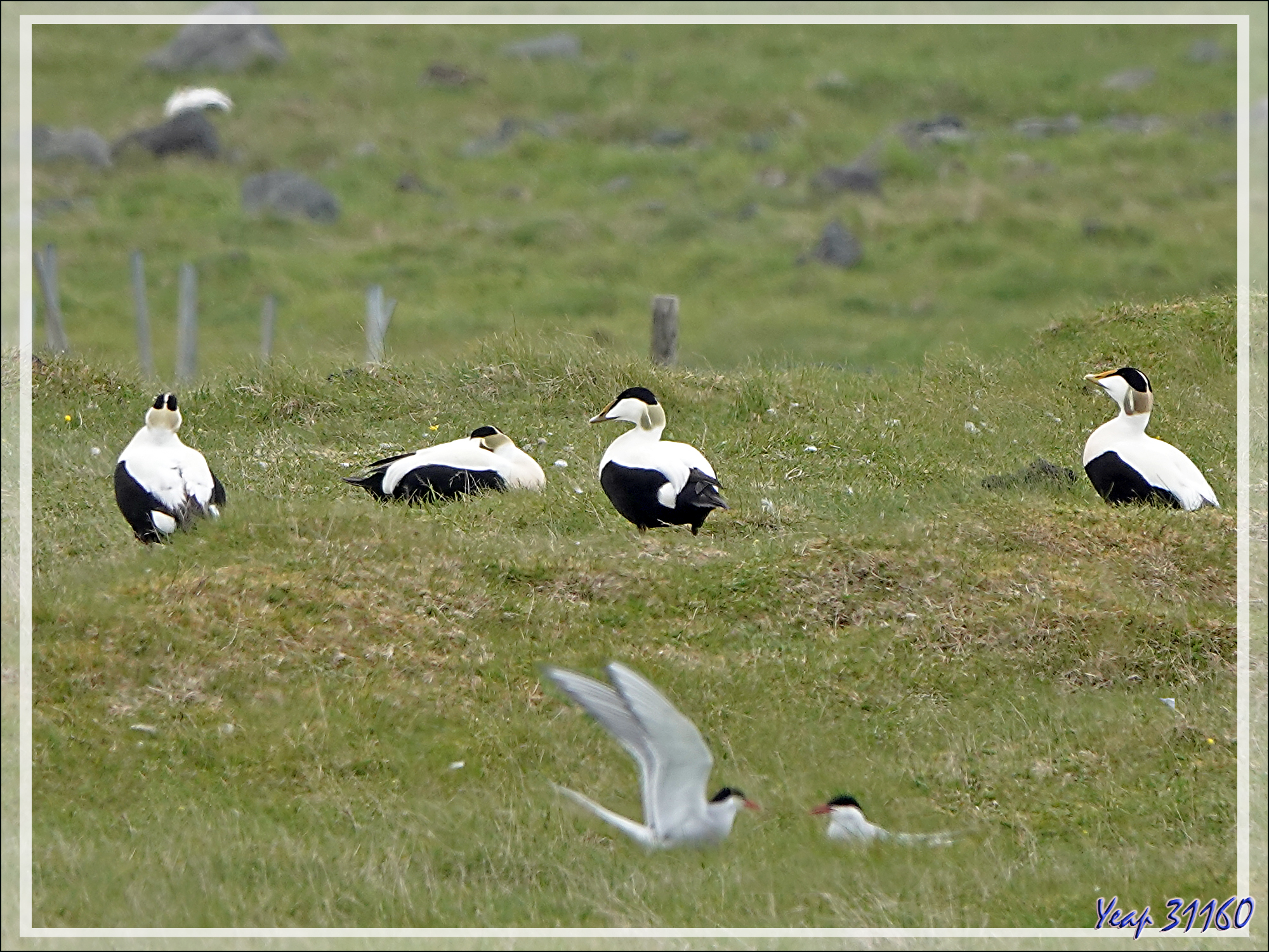 Sternes arctiques, Arctic Tern (Sterna paradisaea) et Eiders à duvet, Common Eider (Somateria mollissima)