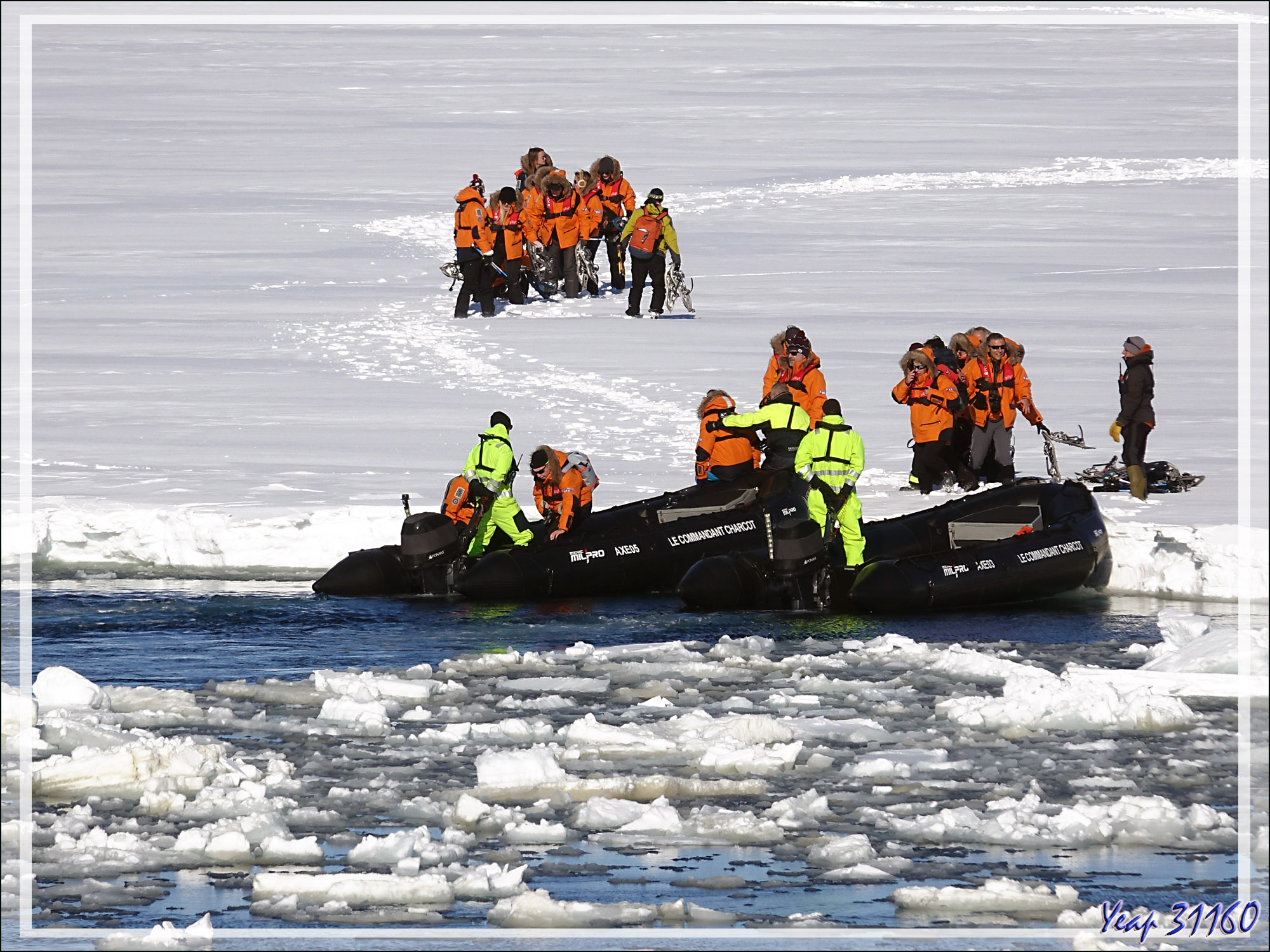 Mais pour les premiers partis, ce sera trop tard, la banquise se fend de partout, certains se trouvent piégés et dans l'incapacité de revenir ! L'hélicoptère est préparé au cas où, des Zodiac sont mis à l'eau (ce qui prend un certain temps) afin d'essayer de récupérer les naufragés de la banquise, qui attendent qu'on vienne les récupérer. Les secours, heureusement, y arrivent ! L'hélicoptère restera sur le pont. Ouf, en définitive tout se sera bien passé pour eux.