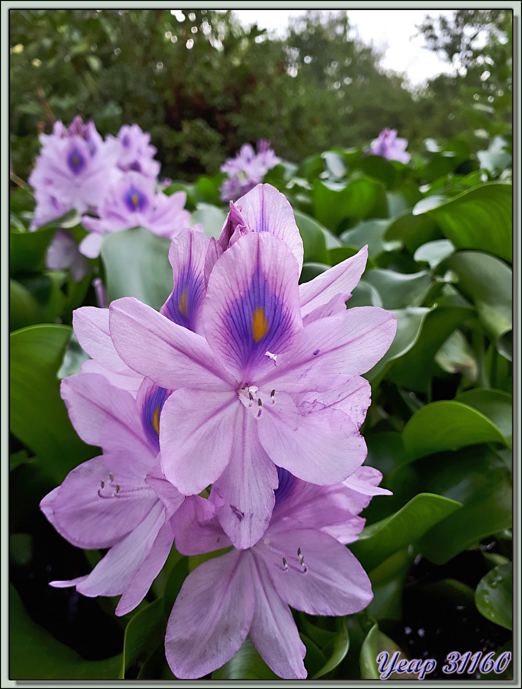 Cette année, c'est floraison à profusion de ces plantes exotiques qui se plaisent bien dans mon petit bassin à poissons. Ce matin, j'ai compté 23 hampes florales épanouies simultanément. Et plein de boutons en attente, sans compter ceux probablement à venir. Loin devant les autres années ou seulement quelques fleurs, et même parfois pas du tout.
