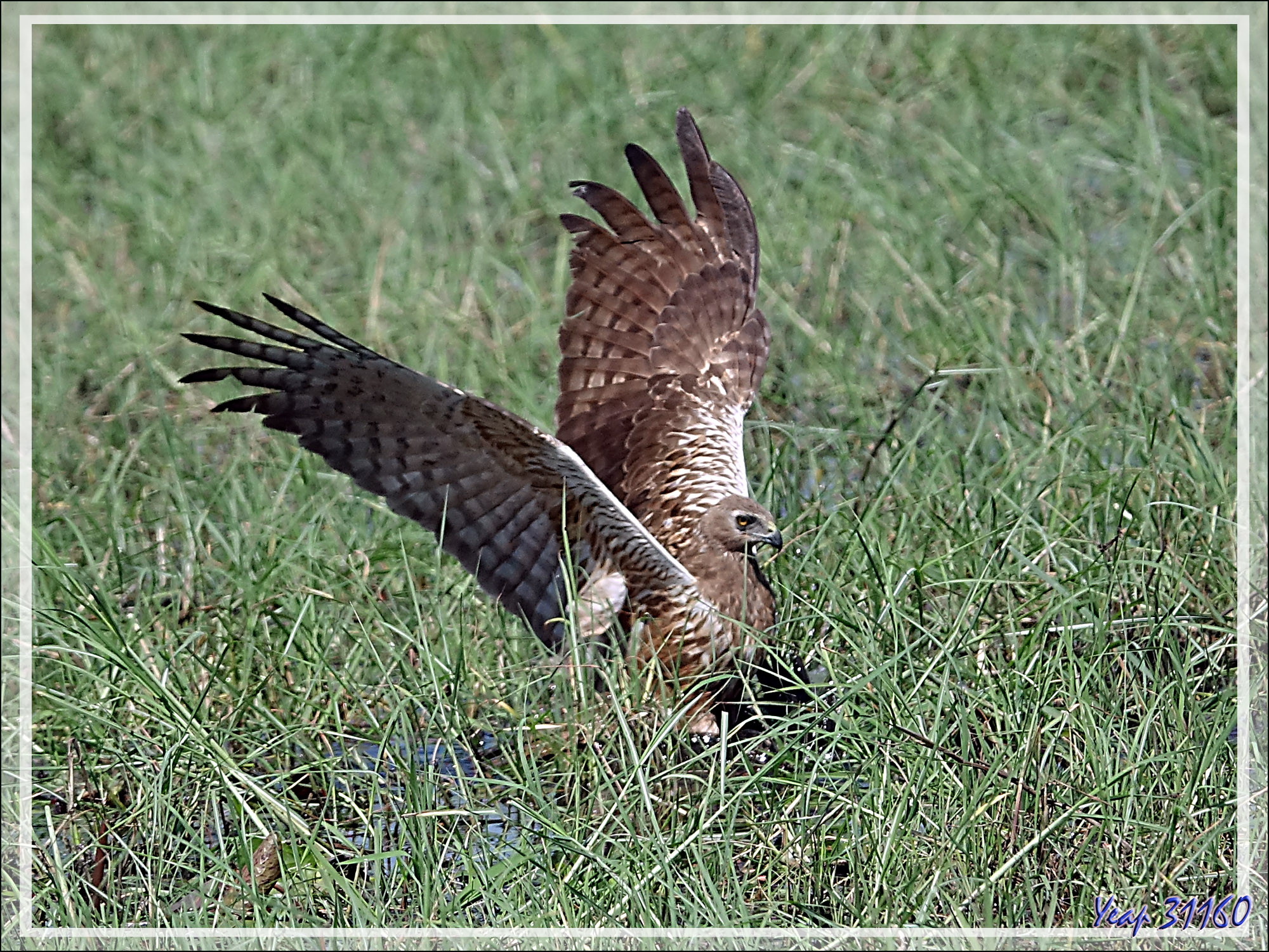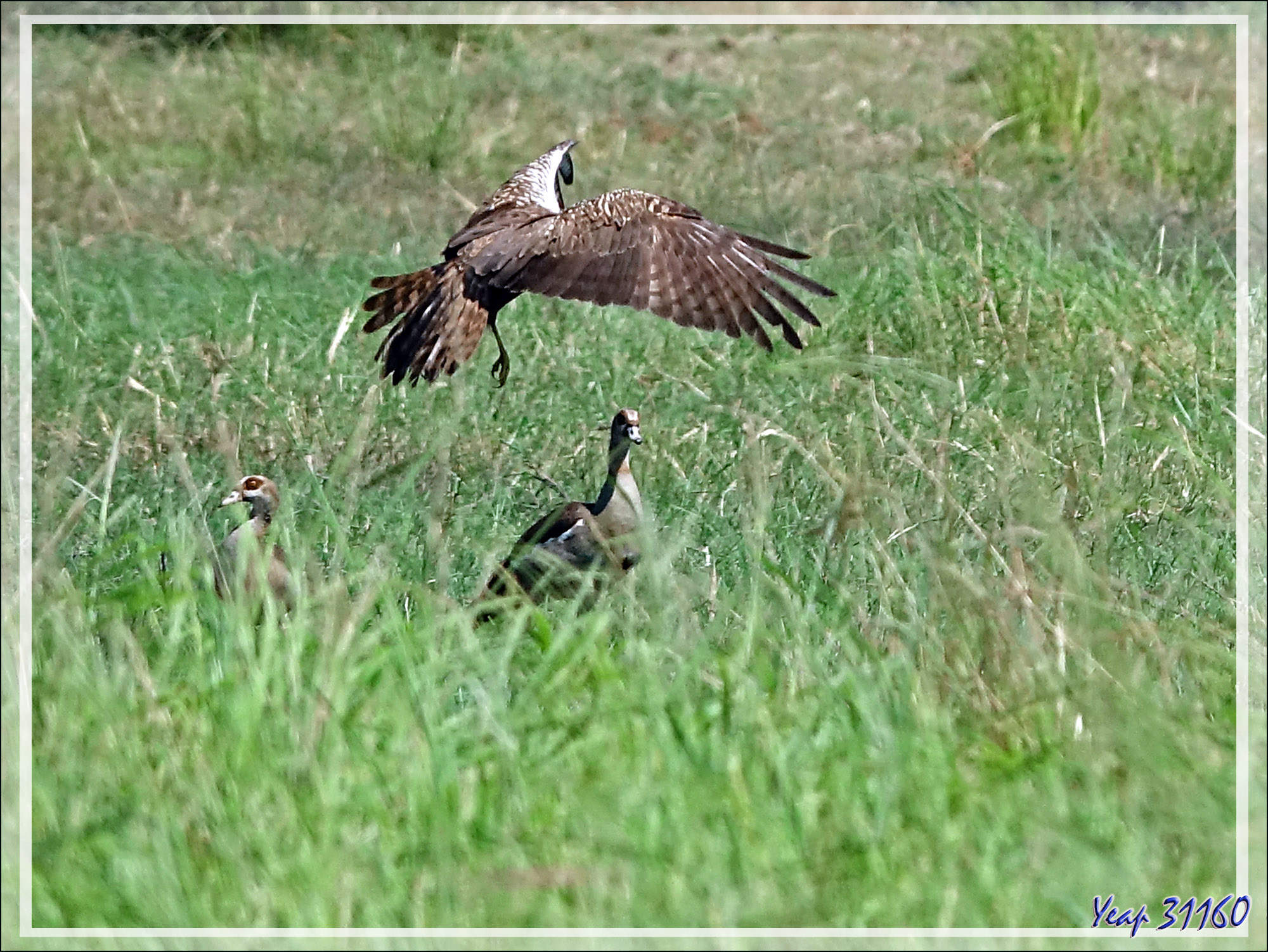 Un Busard grenouillard (Circus ranivorus) attaque, en plusieurs étapes, un gros oiseau (cormoran ?) - Safari nautique - Parc National de Chobe - Botswana