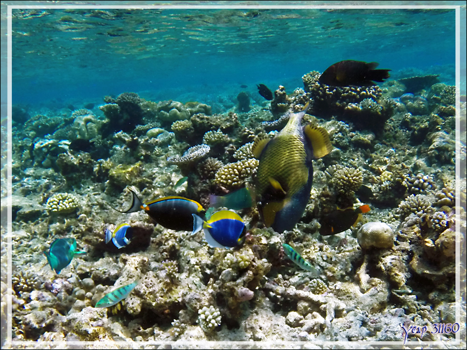 De mon côté, lorsque je veux attirer de nombreux poissons colorés devant mon objectif (papillons, labres, girelles, chirurgiens etc.), je gratte le fond avec un bout de corail mort, et rien que le bruit que je fais leurre les poissons qui pensent que c'est un titan ou un perroquet en train de casser la croûte. Et là ça arrive de partout ...