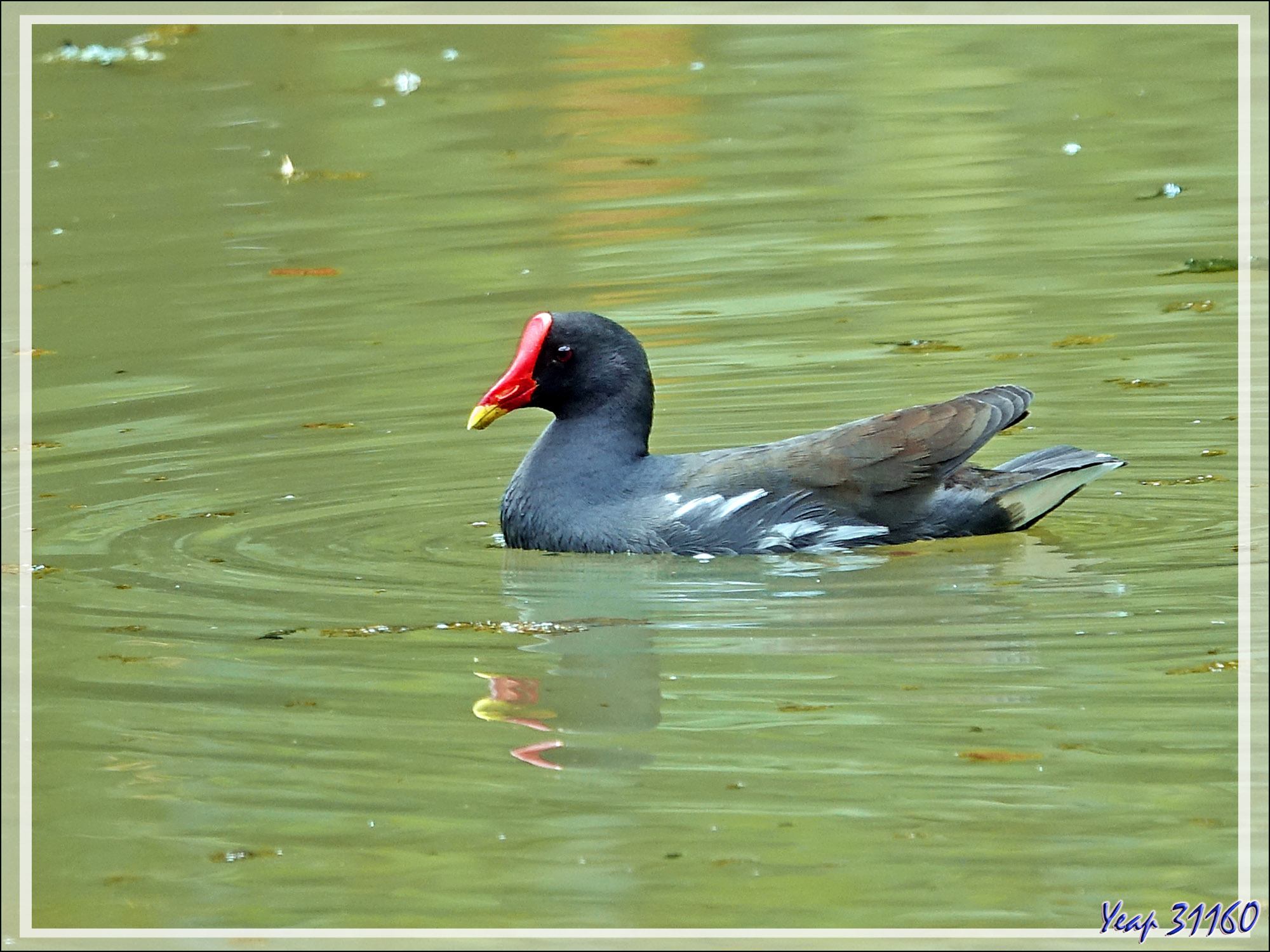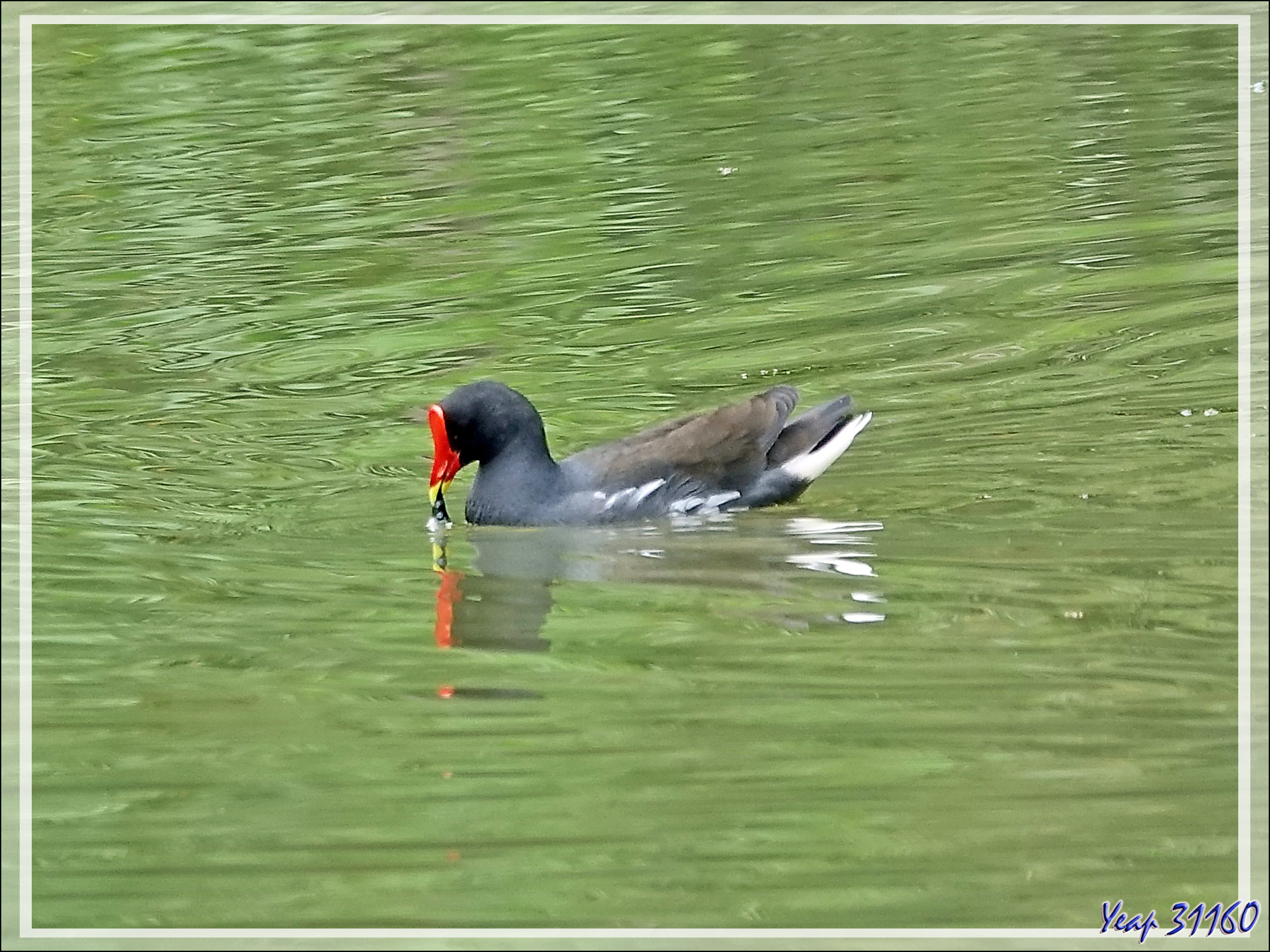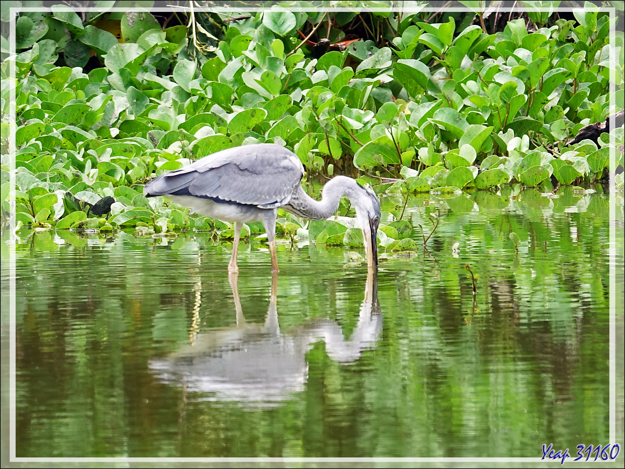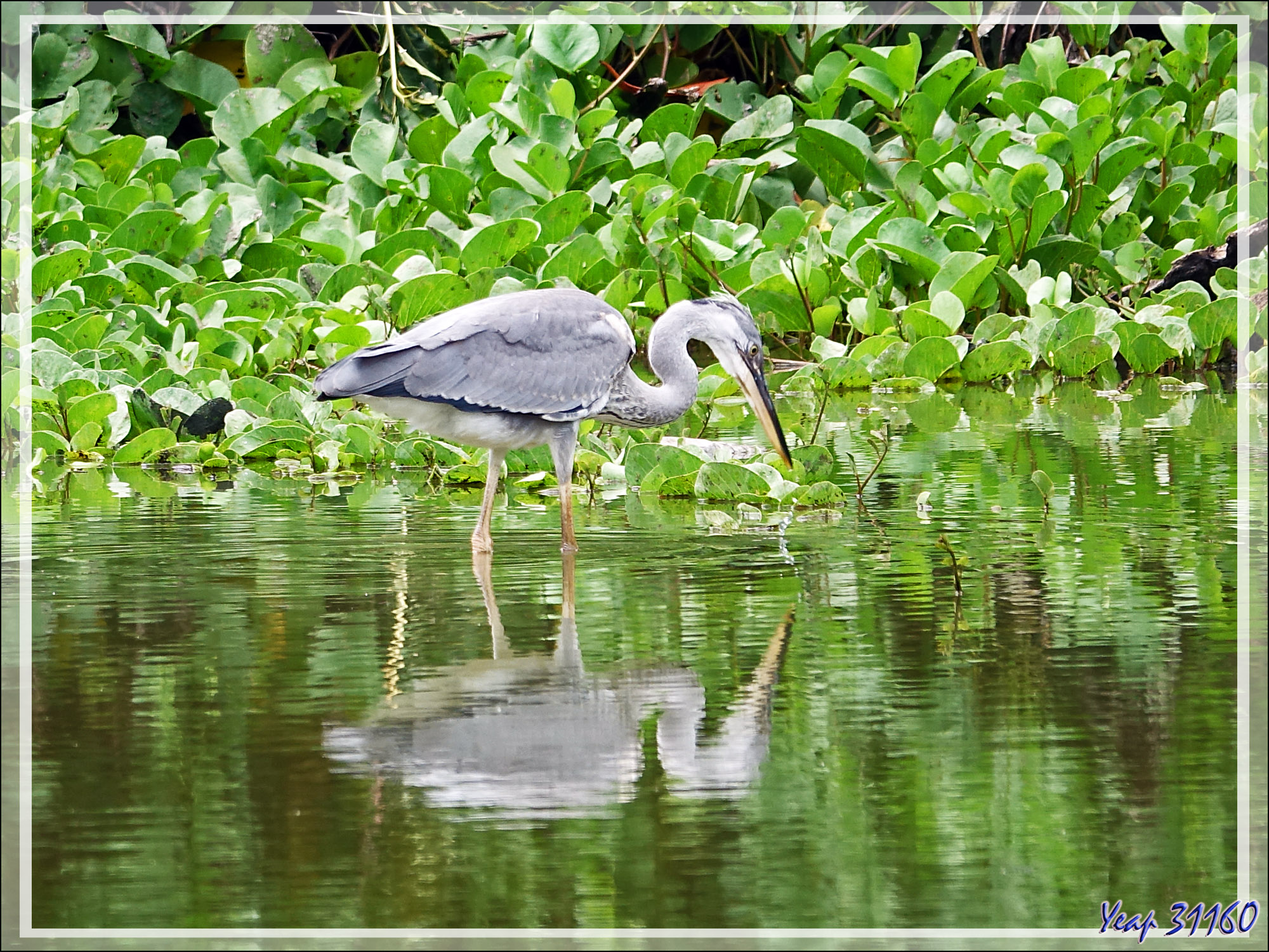 En passant près de la mangrove, nous observons un Héron cendré, Grey Heron (Ardea cinerea) en chasse, et une Gallinule poule-d'eau, Common Moorhen (Gallinula chloropus) cherchant sa pitance.